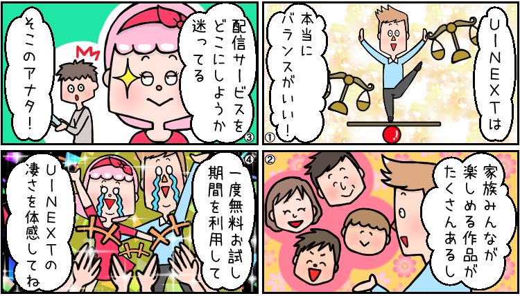 U-NEXTは幅広いジャンルの作品を配信していたり、海外系の動画配信サービスとは違い、細かなサービスが充実しているので、色んな口コミがありました。